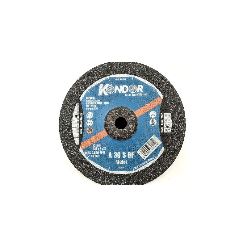 Dischi rinforzati per sbavatura a centro depresso per smerigliatrici portatili. Buona asportazione e durata, grazie alla sua composizione, su ferro e acciai legati. Diametro: 230 mm Spessore: 7 mm