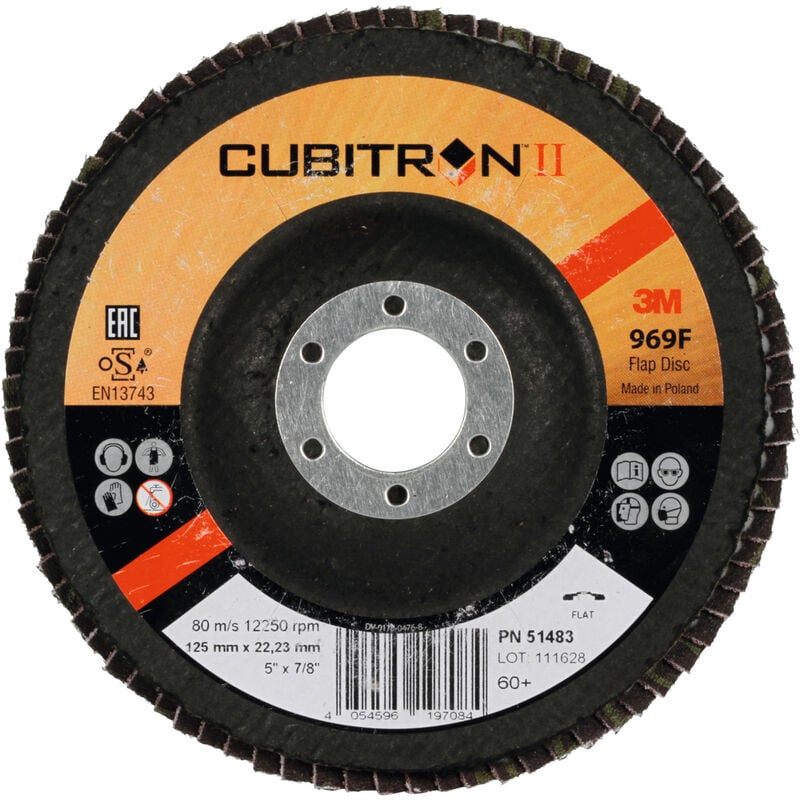Rivestimento con grana ceramica Cubitron™ II PSG per capacità di asportazione e durata massime. Ideale per la lavorazione di bordi. Uso: Ideale per smerigliatura rapida e a freddo di acciai di difficile lavorazione con smerigliatrici angolari potenti. Dati tecnici Percentuale di ferro, zolfo e cloro % < 0,1 Materiale abrasivo Grana ceramica (CER) Attributo del nome del prodotto ⌀ 115 mm Sigla materiale abrasivo Ceramica Velocità periferica massima m/s 80 GG(G) m/s idoneo Acciaio < 55 HRC m/s idoneo a secco idoneo Ti m/s idoneo INOX m/s idoneo Acciaio < 900 N/mm² m/s idoneo Acciaio < 1400 N/mm² m/s idoneo Acciaio < 60 HRC m/s idoneo Acciaio < 67 HRC m/s idoneo Tipo di prodotto Disco abrasivo lamellare ⌀ Foro, mm 22,23 Grana 60 della forma piatto ⌀ Disco, mm 115