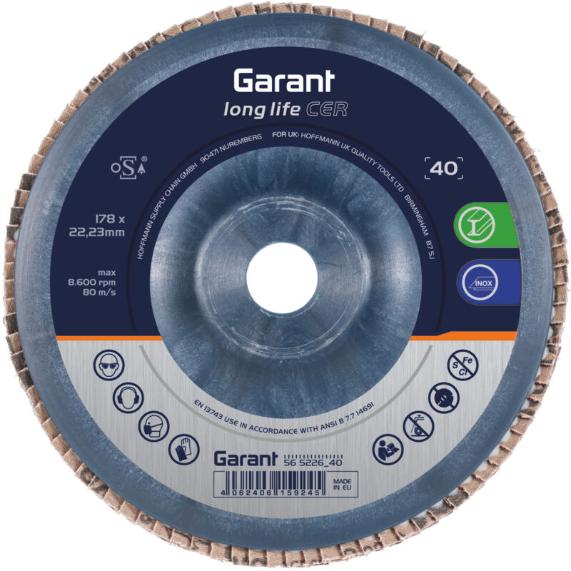 DescrizioneEsecuzione:Grana ceramica autoaffilante (CER) di alta qualità per il massimo potere abrasivo e una minima pressione di contatto.Rivestimento abrasivo per la lavorazione a freddo.Robusto tessuto misto poliestere-cotone per garantire un livello di usura ideale e una maggiore stabilità nell'impiego sui bordi.Platorello ergonomico in plastica e poliestere con sistema antivibrazioni (retrattile).Massimi risultati con smerigliatrici angolari potenti.long life - disposizione estremamente compatta delle lamelle per la massima durata.Uso:Per qualsiasi lavoro di rettifica, lavorazione in piano, asportazione e lavorazione di bordi.Dati tecnici Materiale abrasivo Grana ceramica (CER) Sigla materiale abrasivo Ceramica Grana 40 rivestimento abrasivo di raffreddamento si Percentuale di ferro, zolfo e cloro < 0,1 % Descrizione della forma inclinato ⌀ disco 178 mm ⌀ foro 22,23 mm ottimizzato per il materiale INOX Velocità periferica max. 80 m/s Tipo di prodotto Disco abrasivo lamellare