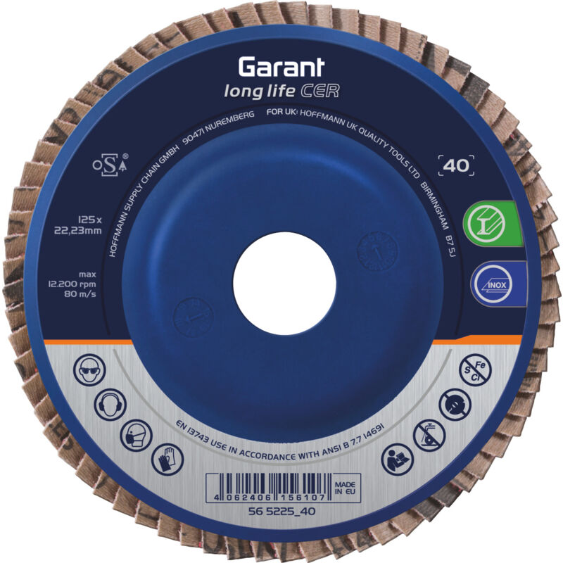 DescrizioneEsecuzione:Grana ceramica autoaffilante (CER) di alta qualità per il massimo potere abrasivo e una minima pressione di contatto.Rivestimento abrasivo per la lavorazione a freddo.Robusto tessuto misto poliestere-cotone per garantire un livello di usura ideale e una maggiore stabilità nell'impiego sui bordi.Platorello ergonomico in plastica e poliestere con sistema antivibrazioni (retrattile).Massimi risultati con smerigliatrici angolari potenti.long life - disposizione estremamente compatta delle lamelle per la massima durata.Uso:Per qualsiasi lavoro di rettifica, lavorazione in piano, asportazione e lavorazione di bordi.Dati tecnici Materiale abrasivo Grana ceramica (CER) Sigla materiale abrasivo Ceramica Grana 60 rivestimento abrasivo di raffreddamento si Percentuale di ferro, zolfo e cloro < 0,1 % Descrizione della forma inclinato ⌀ disco 125 mm ⌀ foro 22,23 mm ottimizzato per il materiale INOX Velocità periferica max. 80 m/s Tipo di prodotto Disco abrasivo lamellare