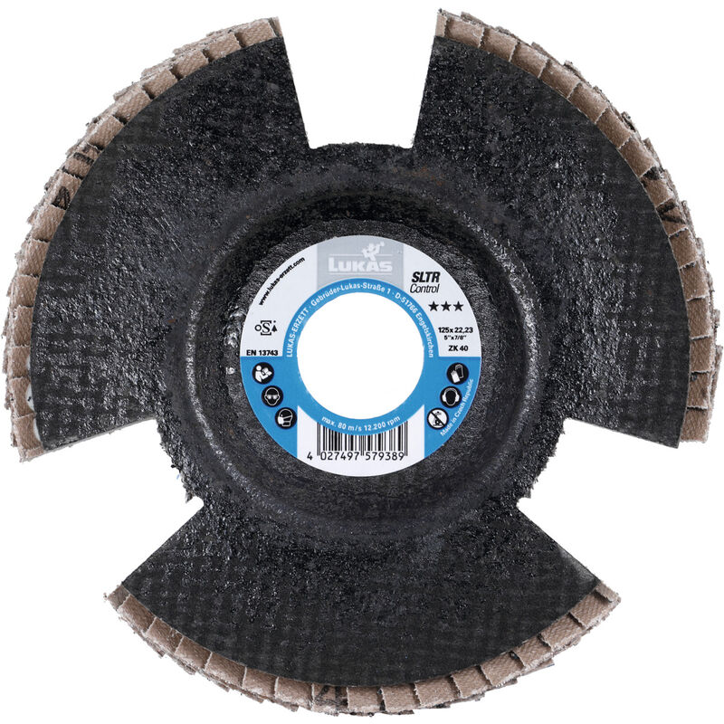 Disco abrasivo lamellarecon campo visivo che permette di vedere il pezzo. Elevato spessore del rivestimento e buona durata. Uso: Ideale per lavorazioni di precisione. Dati tecnici Rettifica a vista sì Velocità periferica massima m/s 80 Attributo del nome del prodotto ⌀ 125 mm Percentuale di ferro, zolfo e cloro % < 0,1 Materiale abrasivo Zirconio (ZA) Sigla materiale abrasivo ZA Ti m/s limitatamente adatto Acciaio < 55 HRC m/s idoneo Acciaio < 67 HRC m/s limitatamente adatto GG(G) m/s limitatamente adatto Acciaio < 60 HRC m/s idoneo INOX m/s limitatamente adatto Acciaio < 1400 N/mm² m/s idoneo a secco idoneo Acciaio < 900 N/mm² m/s idoneo Tipo di prodotto Disco abrasivo lamellare ⌀ Foro, mm 22,23 Grana 80 della forma obliquo con sporgenza lamelle ⌀ Disco, mm 125