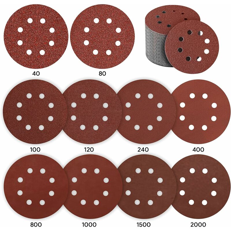 Dischi abrasivi a grana multipla - 10 carte abrasivi di grana diversa, da grana grossa a fine: 10 x 40/80/100/120/140/400, 5 x 800/1000/1500/2000 grana, un totale di 80 pezzi, ti offre più opzioni se necessario 【Adatto universalmente】 I dischi abrasivi da 125 mm sono adatti a diversi tipi di levigatrici rotorbitali, come Makita, Bosch, Tacklife, Dewalt, Ryobi, Vonhaus, ecc. È ideale per tutte le levigatrici orbitali da 5 pollici 【Forte adesione e cambio rapido】 Il disco abrasivo a strappo da 125 mm con una forte adesione, è facile e veloce da attaccare e durevole, non cadrà durante l'uso ed è facile da installare e rimuovere. 【Ampia applicazione】 Il disco abrasivo da 125 mm è adatto per levigare e lucidare mobili, metallo e non metallo, legno, gomma, pelle, plastica, pietra, vetro, automobili, ecc. Si adatta alla maggior parte dei grinder smerigliatrici rotative, casuali e manuali 【Alta qualità】 I platorelli di levigatura sono realizzati con abrasivi in ossido di alluminio di alta
