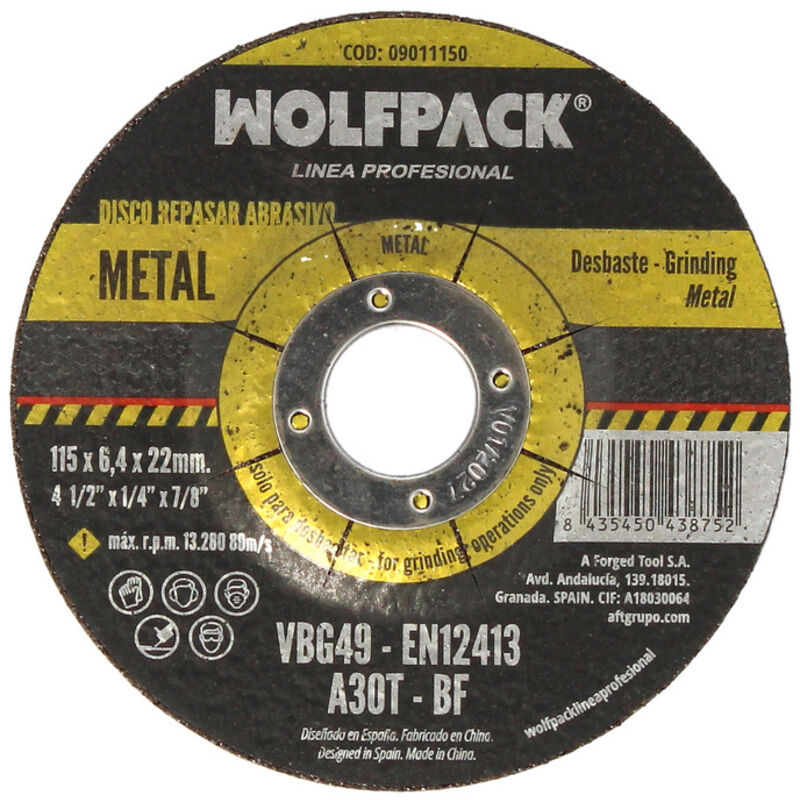 Recensione del disco Wolfpack. - Misure: > diametro disco 115 mm. > diametro anello interno 22 mm. > spessore disco 6,4 mm. - Struttura interna di rete in fibra di vetro per una maggiore resistenza e durata. - Anello interno più spesso per un migliore fissaggio alla macchina. - Materie prime di prima qualità per un uso professionale e duraturo. - Prodotto di altissima qualità e affidabilità.