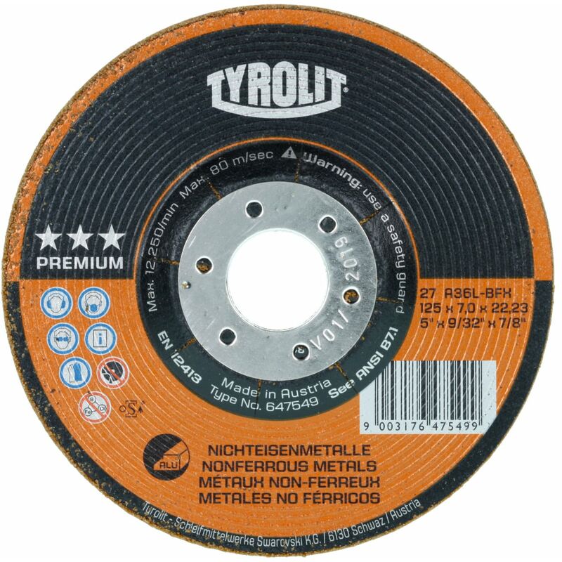 Metalli non ferrosi Velocità periferica max. 80 m/s Numero max. giri 13.300 min-¹ Tipo di prodotto Disco abrasivo per sgrossatura Codice articolo 560405 115X7 EAN / GTIN 9003175760497