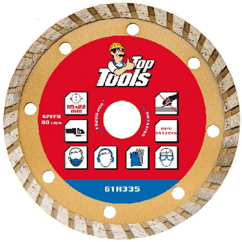 TURBO, A CORONA CONTINUA. PER TAGLIO DI MATTONI, CALCESTRUZZO, TEGOLE.ø 115 MM - FORO 22,2 MM