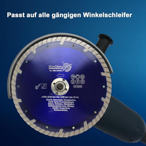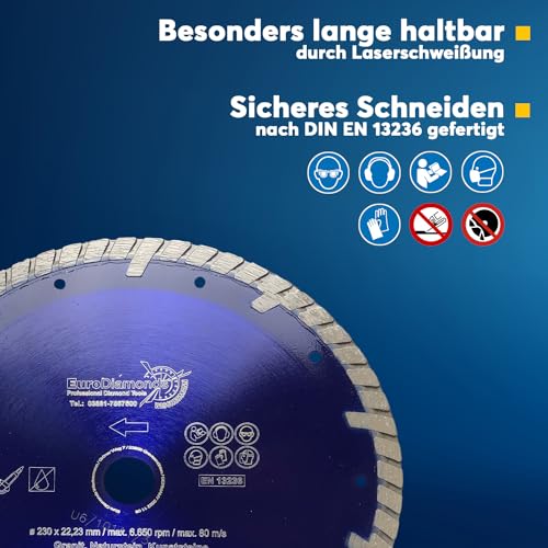 EDW Disco diamantato Granito Turbo Disco diamantato turbo GTS Super Cut, forato, diametro 230 mm, foro 22,23 mm altezza del segmento: 9 mm aggiuntivo protezione segmenti molto schnittfreudig