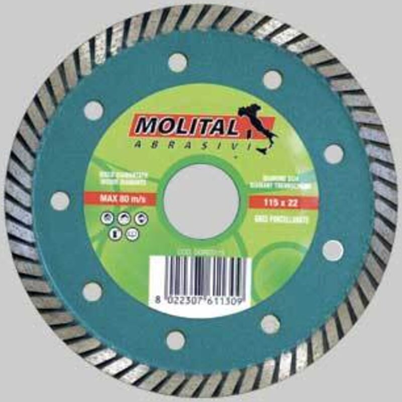A corona continua. Foro √ò mm.22,2. Adatto per taglio di gres porcellanato, piastrelle dure, marmo, terracotta, granito.