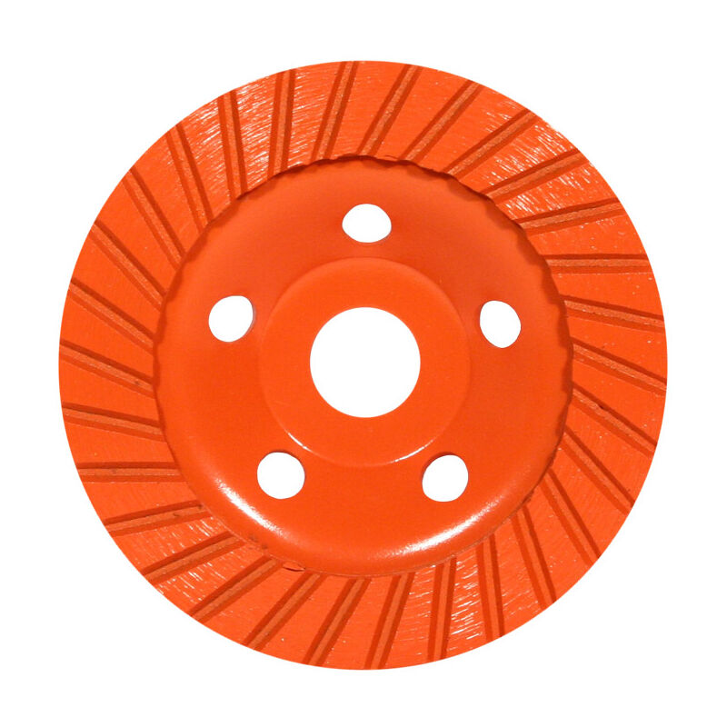 Dati tecnici: Diametro [mm]: 125 Foro interno [mm]: 22,2 giri/min max: 12300 Disco da taglio diamantato TURBO GRINDING Disco diamantato da 125 mm, destinato alla levigatura di superfici in cemento, pietra o altri materiali da costruzione. Adatto per lavori a secco o ad umido Parte del cerchio diamantato tipo TURBO Ruota principale: acciaio al carbonio 45 #Rettifica: CU, Fe, Ni, Sn Polvere di diamante Velocità massima di rotazione 80 m/s**Le foto mostrate sono solo a scopo illustrativo.