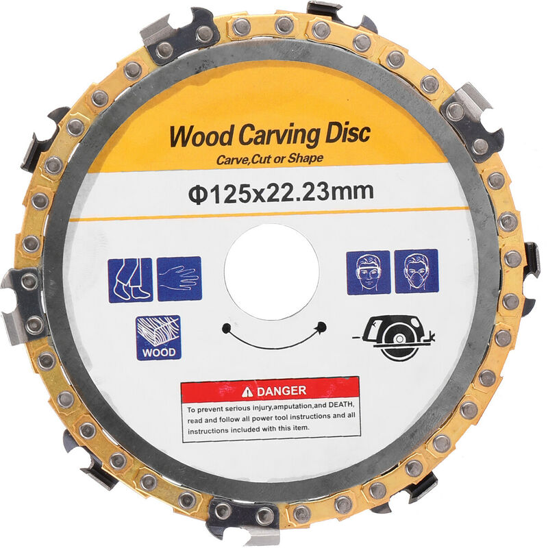 È un accessorio dell'utensile abrasivo, facile da usare e da installare, ha una lunga durata. Specifiche: Materiale: lega dura Colore: argento+oro Diametro: 125mm Pergolato: 22mm ( 7/8") Denti: 125 mm di diametro: 9 denti Velocità massima: 25000 giri/min (consiglio 10000-13000 giri/min) 125 mm di diametro: adatto per 5" (125 mm) smerigliatrice angolare o sega circolare. Spessore disco catena: 5 mm / 0,2 pollici Dimensioni confezione: 225 * 166 * 20 mm / 8,9 * 6,5 * 0,8 pollici Peso confezione: 125 mm: 278 g / 9,8 once Nota: Non è consigliabile utilizzare la funzione di blocco interruttore su qualsiasi smerigliatrice. Ciò potrebbe causare lesioni gravi. Elenco dei pacchetti: 1 * Disco per catena smerigliatrice
