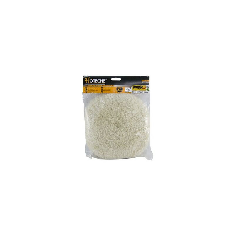 Disco in lana lucida 560421. Per smerigliatrice di 180 mm. Lunga durata. - 100% lana. - 200 x 200 x 40 mm. - Beige. - 191 g. - sistema di aggancio Velcro. - Borsa 1 unità.