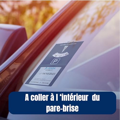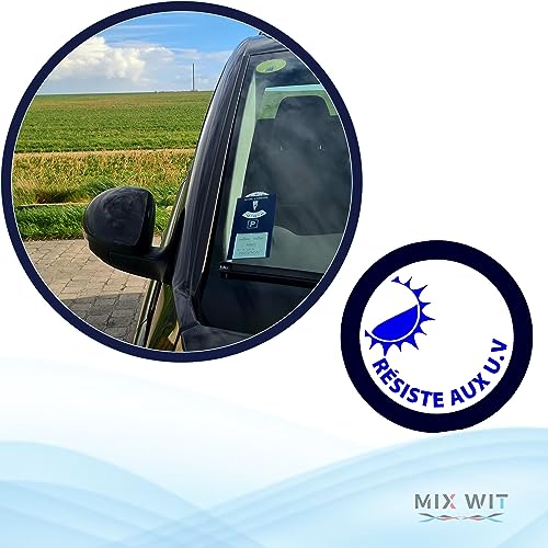 MIX WIT Disco di parcheggio adesivo per zona blu | Disco timestamp | Formato doppio lavoro | Porta viti Assicurazione o controllo tecnico | PVC Anti UV morbido | Dimensioni 12,5 X 7 cm