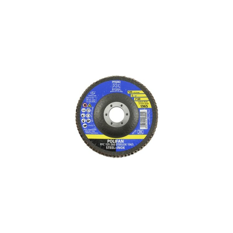 Disco laminato Polyfan 125-60 zirconio.- Disco di fogli di levigatura con prestazioni di levigatura aggressive e buona durata.- Diametro: 115 mm.- Granulometria: 60.