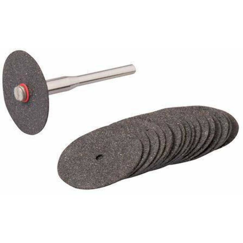17 x 22mm resin discs plus 1 x 3.1mm mandrel. Max speed 28,000rpm.