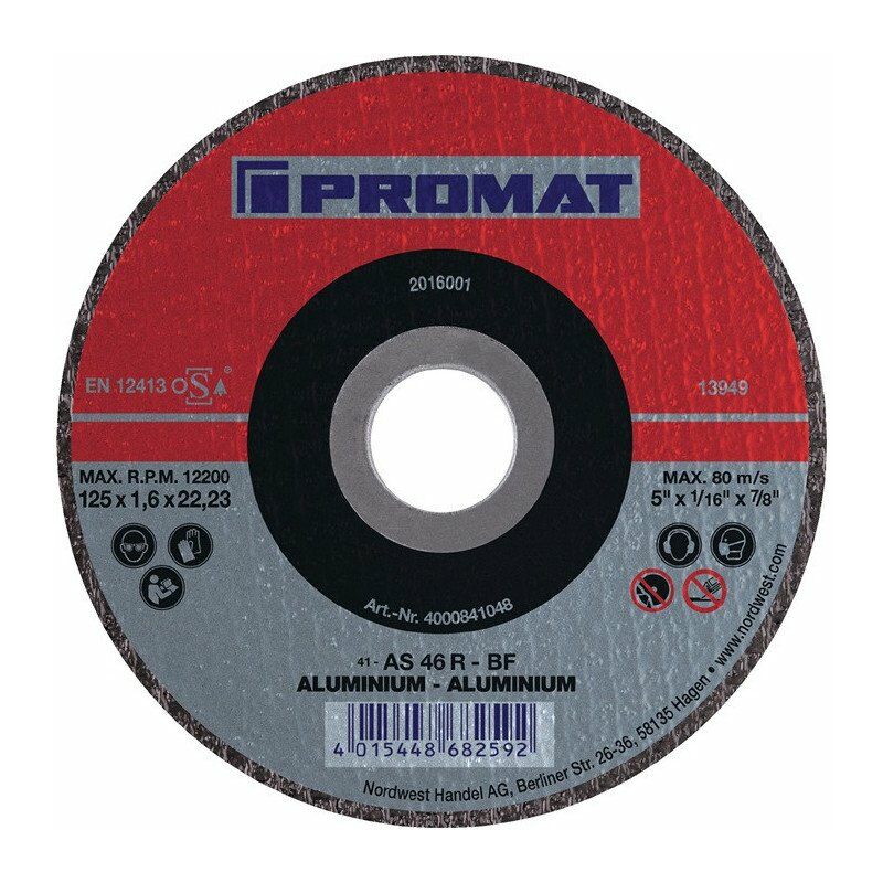 Per la lavorazione dell'alluminio e dei metalli non ferrosi · — (DE) La commissione per la separazione rapida · nessuna fusione del disco · Foro 22,23 mm Ø Altre caratteristiche tecniche: · velocità: 13300min-¹
