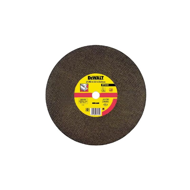 Disco da taglio Dewalt 355 x 25,3 mm. DT42800 - Dimensioni: 355x25,3 mm. - Massimo numero di giri: 4400. - Velocità: 80 m/s. Peso e dimensioni Peso645 g