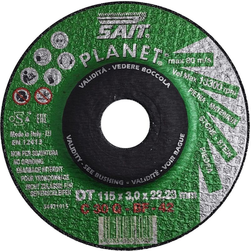 PLANET - DT C 30 Q Mola a centro depresso per taglio con macchine portatili. Impiego universale. Utilizzo: Taglio macchine portatili Famiglia: Mole Sottofamiglia: Planet Abrasivo C-Carburo: di Silicio Applicazioni Metallo: Ghise Applicazioni Pietra: Materiali Edilizia