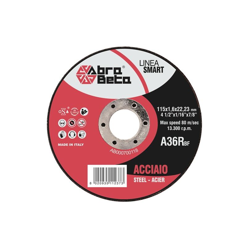 DISCO ABRASIVO mm. 230x2x22 FERRO PIANO Utilizzabili universalmente per il taglio di acciai non trattati. Precisa e concentrata asportazione di materiale e conseguente basso assorbimento di potenza dell'elettroutensile. Ridotta produzione di bave. Cod. Art. Diametro Spessore Foro Max RPM AB000700230 230 2,0 22,23 6600