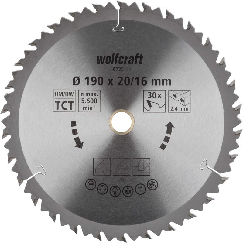 Lunghezza Croce e tagli Per legno, truciolato Materiale: TCT Superficie terreno Sabbiate denti bordo - tagli longitudinali e trasversali - per legno, pannelli di masonite - materiale: MD - superficie levigata - corona dentata sabbiata - dente alterno - qualità di taglio tagli rapidi e fini - imballo: blister diametro: ø 190 mm foro: ø 16 mm larghezza di taglio: 2,4 mm denti: 30