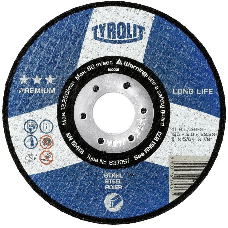 Disco duro per troncatura di elevate prestazioni indicato particolarmente per lamiere, profili e tubi in acciaio di notevole durata. Non per INOX (percentuale di Fe, S e Cl > 0,1agv%). Uso: Per la troncatura a mano su smerigliatrici angolari elettriche e ad aria compressa con velocità di taglio vc di 80 m/s. Specifica: A30S-BFXA. Nota: Lo spessore dei dischi deve essere pari ad almeno il 20% dello spessore del materiale da troncare. Dati tecnici Acciaio < 60 HRC m/s idoneo Acciaio < 1400 N/mm² m/s idoneo Acciaio < 900 N/mm² m/s idoneo GG(G) m/s limitatamente adatto Acciaio < 67 HRC m/s idoneo a secco idoneo Acciaio < 55 HRC m/s idoneo Angolo di registrazione consigliato Grad 90 Sigla materiale abrasivo A Velocità periferica massima m/s 80 Tipo di prodotto Disco per troncatura Ottimizzato per il materiale Acciaio ⌀ Foro, mm 22,23 Numero massimo giri, min-1 6.600 Specifica A30S-BFXA Larghezza disco, mm 2,5 Per spessori materiale, mm 7,5 della forma diritto Forma 41 ⌀ Disco, mm 230