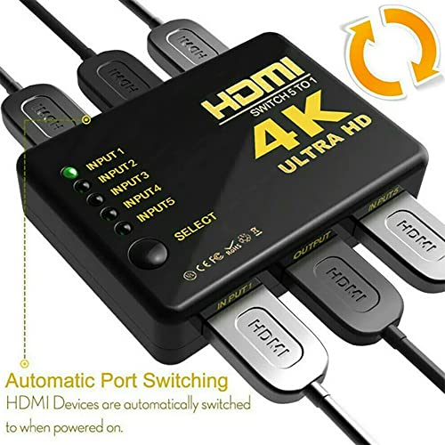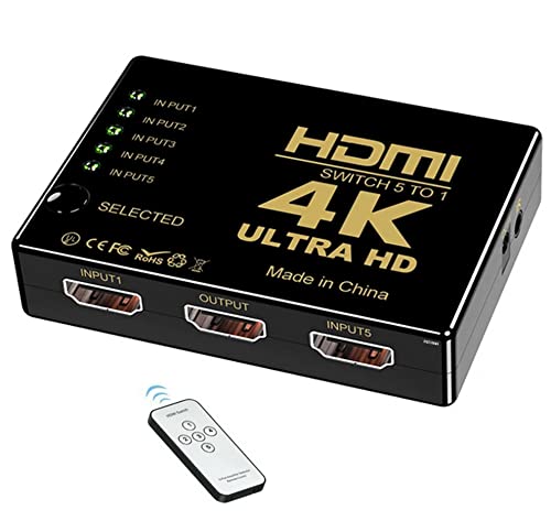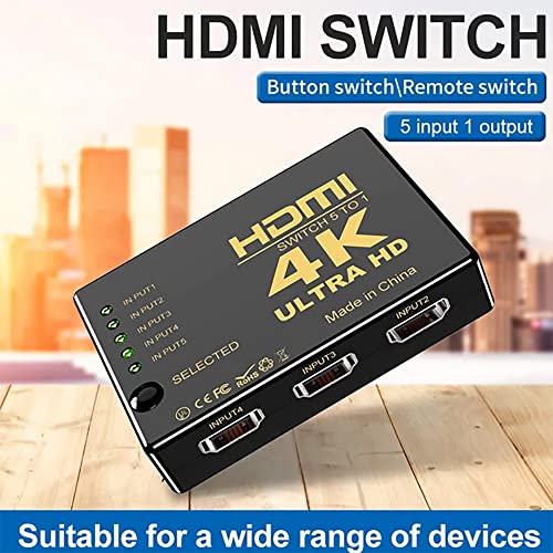 DISCORAMA SWITCH HDMI 5 IN 1 CON TELECOMANDO AD INFRAROSSI 4K 3D HD1080P, SUPPORTO CAVO HDMI CON 5 PORTE, COMMUTATORE HDMI ADATTATORE