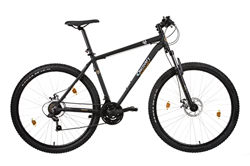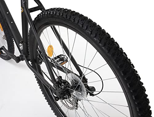 29'' MTB FRONT SUSPENSION DISCOVERY per una maggiore sicurezza è dotata di catadiottri ruota, freni v-brake acciaio e cavalletto. Questa 29'' MTB FS è disponibile in un'unica taglia -, adatta per un'altezza di circa 170-180cm.