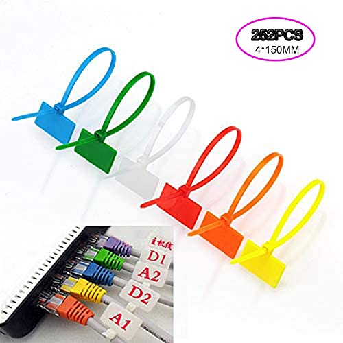 Discra 250Pcs Etichette per Cavi Colorato Fascette Stringicavo Fascette Elettricista con 288 Adesivi per Etichette 1 Penna Marcatore 7 Colori