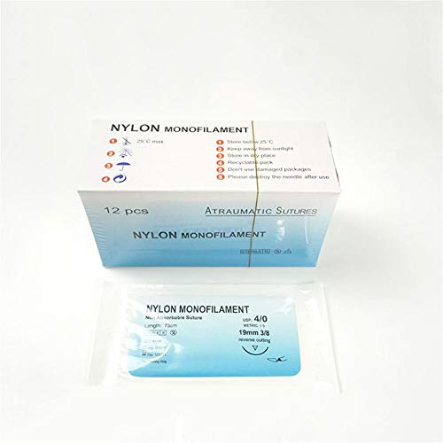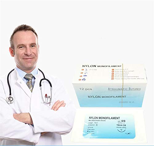 Discussione Practice Kit Sutura con L'ago 12Pcs Seta/Monofilo di Nylon USP 2/0 4/0 per Studenti, Infermieri, Dentale Principianti Atraumatica Taglio di Sutura E Knotting Formazione,Nylon 4/0