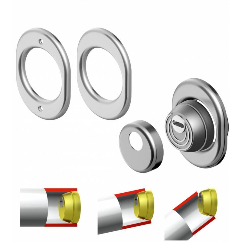 1,0 PZ Di PROTECTOR SFERIK BDS 68 ACC SERRATURA ATRA CR SAT Mod. SFERIK BDS 68 corpo in acciaio temperato e copertura in ottone. Con mostrina. Per serrature ATRA. Finitura cromo satinato