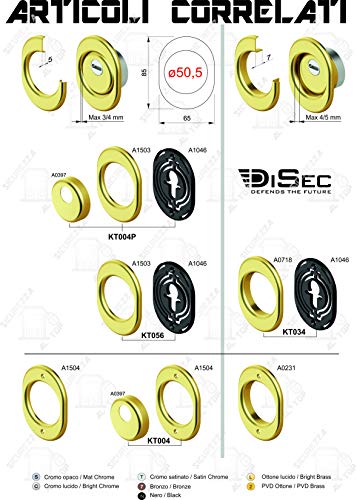 Disec kt037 placchetta bocchetta rosetta per porta doppia mappa-ottone lucido