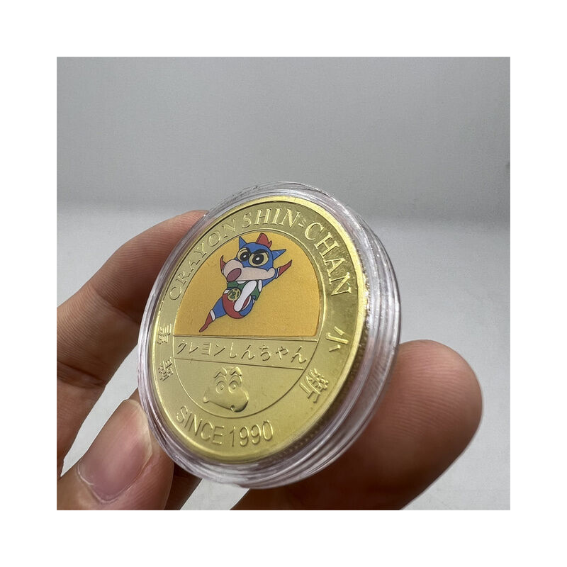 5 disegni Crayon-Shin-chan moneta placcata in oro simpatico cartone animato distintivo in metallo anime giapponesi da collezione per regali di compleanno del ragazzo,03