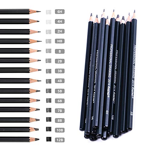 Perfetto set di matite - Il set di matite da artista include 14 matite da disegno morbide a dure: 12B 10B 8B 7B 6B 5B 4B 3B 2B B HB 2H 4H 6H. Inoltre, il set di matite da disegno viene fornito con un astuccio, un temperamatite a doppio foro e una gomma, con un set completo di matite da disegno, il processo di pittura sarà molto rilassante e piacevole.