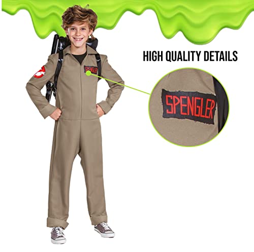 Perfetto costume ufficiale da Ghostbusters per bambini, ideale per film afterlife con zaino protonico ghostbuster e gosthbuster tuta, cosplay bambino acchiappafantasmi per halloween e giochi di ruolo.