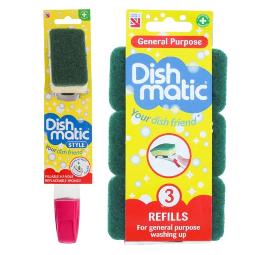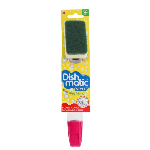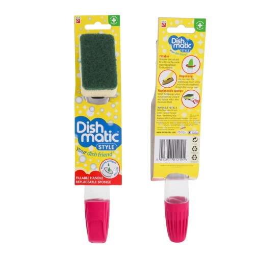Dishmatic - Testa di spugna con manico riempibile per erogazione di liquidi e 3 spugne di ricarica (ricariche)