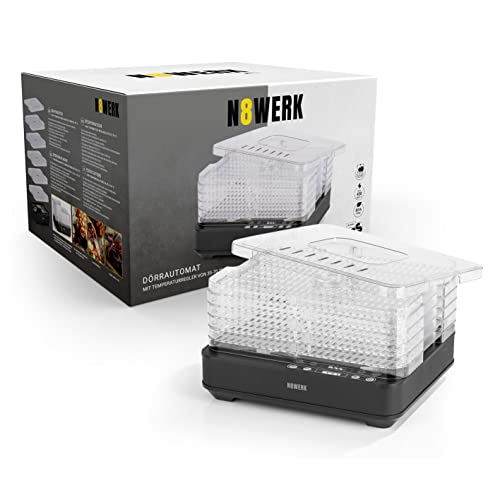 Con controllo della temperatura: la temperatura nel disidratatore N8WERK è regolabile individualmente da 35-70 °C e permette così una cottura che preserva le sostanze nutritive per patatine vegetali ricche di vitamine, frutta secca e così via, secondo il gusto individuale.