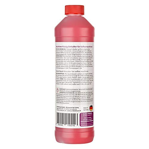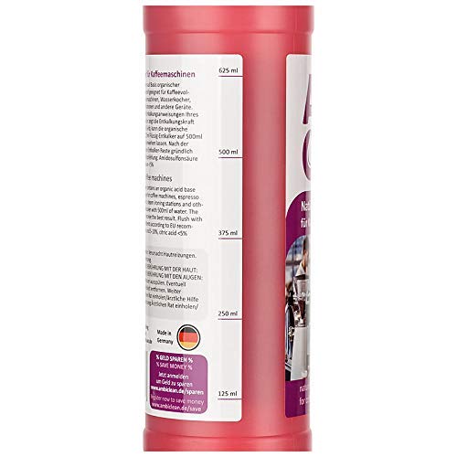 Disincrostante macchine caffe universale - 2x 750ml = 1.5 Liter macchine da caffè, macchine da caffè espresso, ferri da stiro, scaldabagni, detergente naturale con acidi organici utilizzato universalmente per Delonghi, Saeco, Tassimo, Senseo, Giura e altre marche - Made in Germany, con garanzia soddisfatti o rimborsati