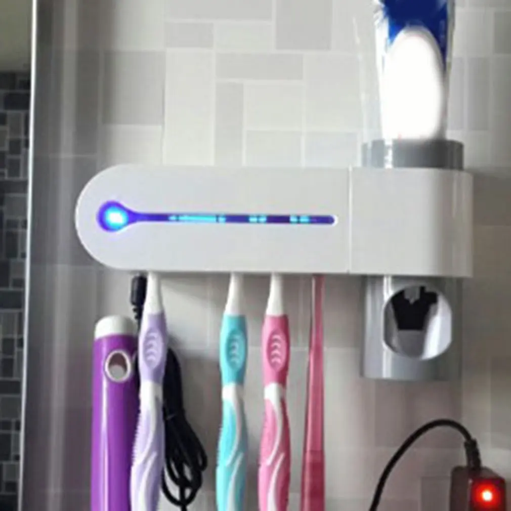 UV Disinfection Toothbrush Automatic Toothbrush Steriliser Cleaner Brush Holder Set with Automatic Toothpaste Dispenser