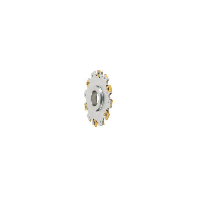 Fresa a disco Fresa a disco con inserti a vite. Angolo assiale 3° - angolo radiale 12°. taglio su tre lati. Per fresatura di scanalature e troncature. In dotazione: senza inserti indicizzabili. senza cacciavite. * Numero effettivo di denti per il calcolo dell'avanzamento.