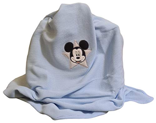 DISNEY - COPERTINA NEONATO 100% COTONE JERSEY PER CULLE CARROZZINE E LETTINI | Coperta Disney Baby con ricamo Minnie e Topolino | Ottima idea regalo, Licenza Ufficiale Disney (BLU)