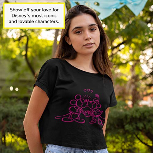 Disney Mickey Mouse und Minnie Mouse Kuss Damen geerntete T-Shirt Schwarz XXL | Geschenk-Idee für Damen, Mode Top Ernte