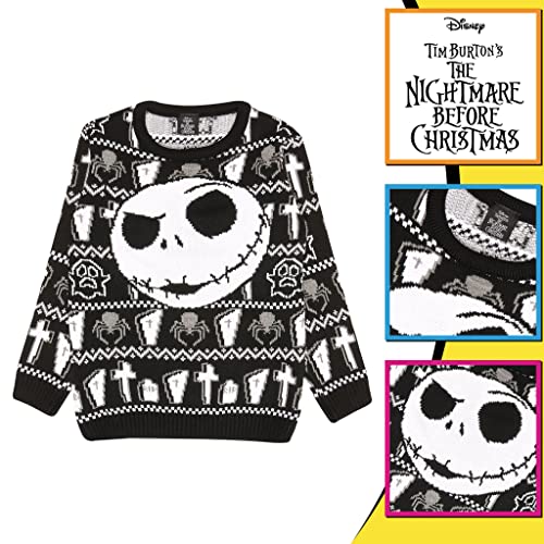 Disney The Nightmare Before Christmas Jack-Gesicht Junge Strickpullover Schwarz 128 | Weihnachten Jumper hässlichen Strickjacke Fair Isle Kinder Weihnachten Geschenke Kinderkleidung
