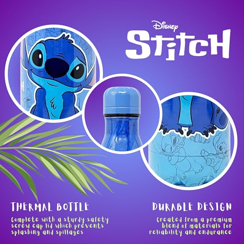 Disney Stitch Bottiglia Riutilizzabile, Design Resistente, Borraccia per Ragazze, Bottiglia da Viaggio, Capacità 500 ml - Blu