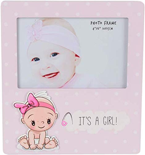 DISOK - Portafoto It's A Girl in legno Carinissimo portafoto di colore rosa per battesimo Cornici da bambina per battesimo Portafoto