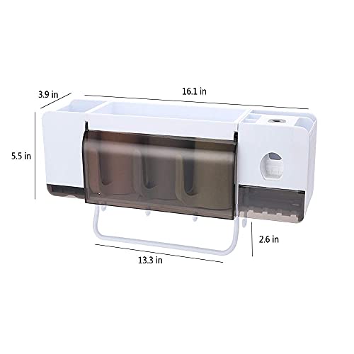 Dispenser Automatico di Dentifricio da Parete e Porta Spazzolini Antipolvere, Multifunzione, Salvaspazio, Organizer Salvaspazio, con 3 tazze, Barra Porta Asciugamani, non Necessita di Trapano