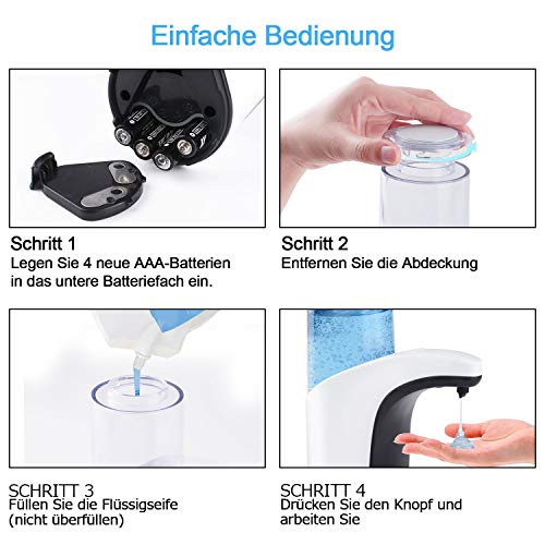 Dispenser automatico di sapone liquido, 300 ml dispenser elettrico con sensore, base impermeabile, dispenser di sapone a infrarossi con sensore per cucina e bagno disinfettante Shampoo Emulsion, bianco