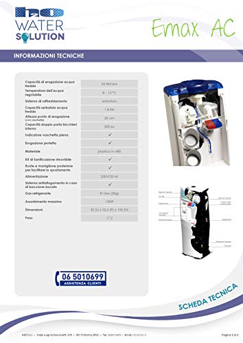 Ha un doppio porta bicchieri per alloggiare oltre 200 bicchieri monouso. Beccuccio di erogazione dell'acqua nascosto per una maggiore igiene.