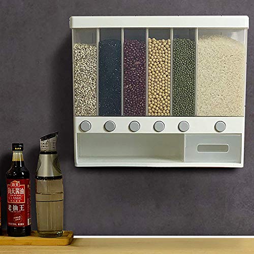 Dispenser per cereali a parete, 6 in 1, da cucina, contenitore per alimenti secchi, cereali, noci, chicchi di caffè, soia