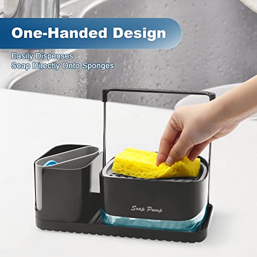 Set di dispenser per detersivo da cucina, colore nero, con vassoio e supporto in spugna, per detersivo ricaricabile, adatto per lavello della cucina, pratico utensile da cucina