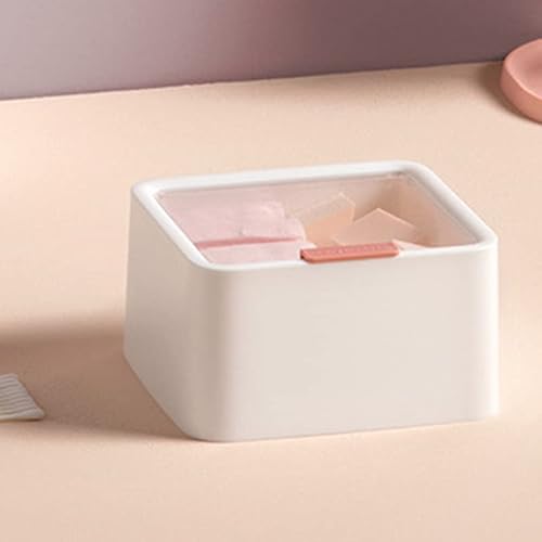 Dispenser per Dischetti di Cotone con Coperchio Trasparente - Scatola Porta Dischetti Cosmetici Antipolvere, Leggera e Raffinata per Tamponi di Cotone, Rossetto (WHITE)