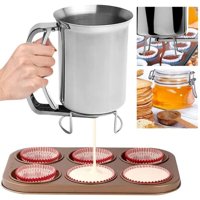 Peso: 280 g Dimensioni: 15*11,5*16,5 cm Colore: come mostrato Manico ergonomico: premendo la maniglia per aprire la presa foro, la pastella fuoriesce dall'erogatore. Rilasciare la maniglia per chiudere l'apertura inferiore e la pastella smetterà di fuoriuscire Materiale in acciaio inossidabile per uso alimentare: il separatore di pastella per torte è realizzato in acciaio inossidabile, che è sicuro e durevole, privo di BPA, resistente alla corrosione resistente, resistente alle alte temperature e durevole, facile da pulire Buona tenuta e antigoccia: l'uscita del distributore di pastella è dotata di una guarnizione in silicone, che ha buone prestazioni di tenuta. Quando l'uscita è chiusa, la pastella non fuoriesce, il che può mantenere pulite le mani e la cucina. Rendi la tua esperienza di cottura più pulita Comodo design a bocca larga: il comodo design a bocca larga sulla parte superiore del separatore di pastella è facile da riempire e rende più facile versare la pastella per torte e