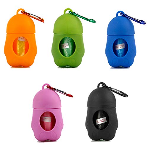 Dispenser per sacchetti per cani con fibbia in metallo per alpinismo, 5 pezzi, per sacchetti di immondizia, facile da cambiare, adatto per qualsiasi cintura